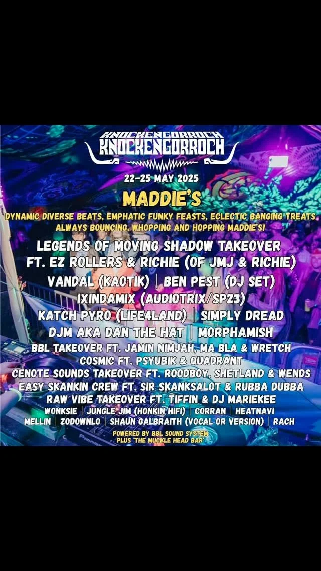 Co founded original net label Black Lantern Music in 2009. 10 year resident at debauchery institution ETC, he’s rocked countless festivals, raves and clubs across Scotland and the UK at fun places like Kelburn Castle and Knockengorroch. Runs Sound Sound recording studio since 2002. Produces podcast You Call That Radio? since 2020. Runs weekly dj/av show (and forthcoming monthly party) Club Anywhen since oct 2022.